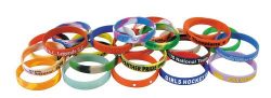 Woven, embroidered, dye sublimation, safety reflective, detachable buckles, breakaway clasps, multiple sizes and lengths, along with numerous attachments are available with our custom design lanyards. Give our sales team a call and let us design your lanyard today. Embossed, debossed, color enamel fill, UV sensitive, jewel and rhinestone attachments are a few of the design options available for our silicone bracelets. Give our sales team a call and let us help you design or quote your custom silicone bracelet.