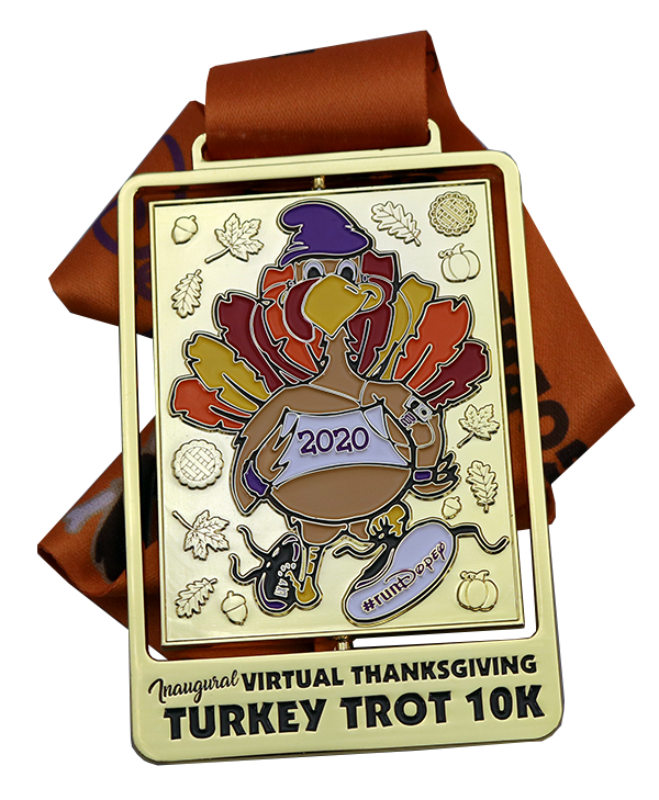 - 3.5″ Die Struck Shiny Gold Medal, Regular Loop, Enamel Fill, Custom 34″ x 1 1/2″ Ribbon